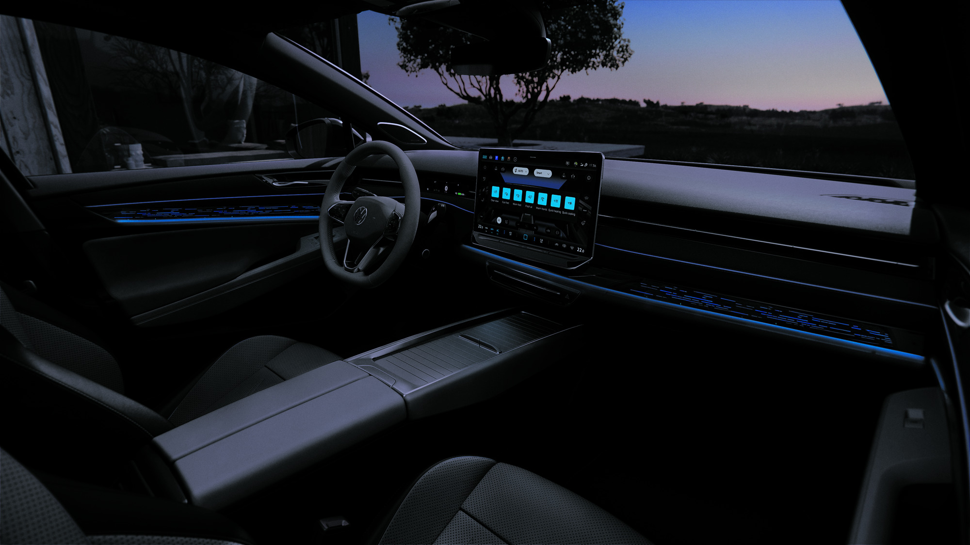 Som tillval kan programmet styras av din Volkswagen: Wellness In-Car-appen samordnar olika komfortfunktioner och förvandlar din ID. till en välbefinnande-oas – oavsett om du kör, parkerar eller laddar.